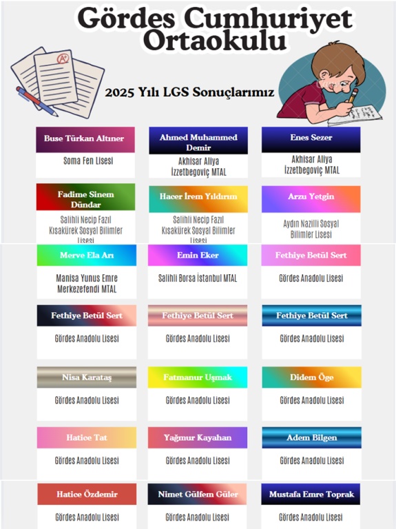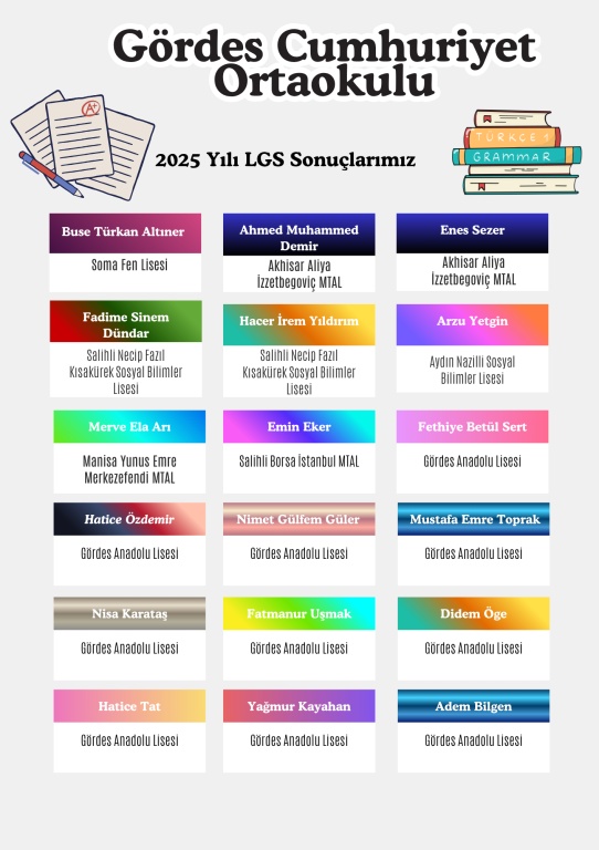 2024/2025 Eğitim Öğretim yılı LGS sonuçlarımız aşağıdaki resimde verilmiştir. Emeği geçen öğretmenlerimize ve öğrencilerimize teşekkür ederiz.
